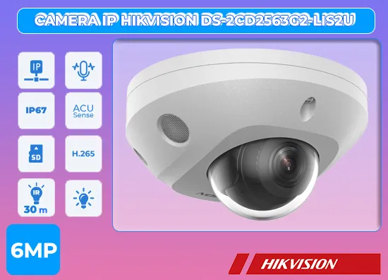 Camera DS-2CD2563G2-LIS2U với các thông số kỹ thuật nổi bật . Loại camera giá rẻ này kết hợp màu sắc trong sáng và hình ảnh sắc nét với công nghệ Ultra 4k lite. Camera cung cấp nguồn qua dây tín hiệu và có khả năng hiển thị màu vào ban đêm với công nghệ thiếu sáng hồng ngoại 30m. Điểm cộng thêm cho chất lượng camera trang bị đặc biệt với tính năng báo động nhận dạng chuyển động trước ống kính.