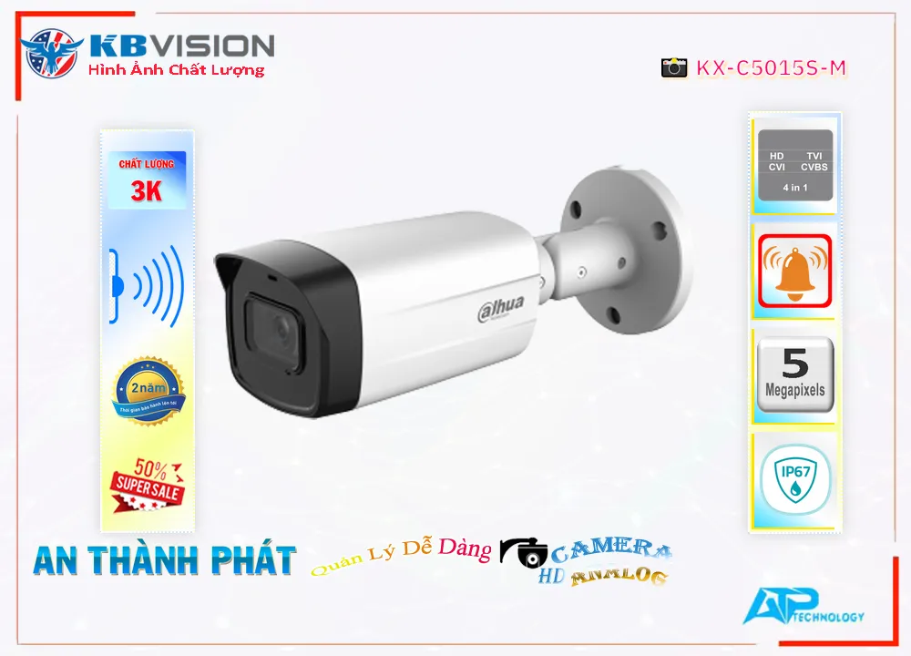 🤙 Camera KX-C5015S-M của KBvision có các thông số kỹ thuật cơ bản sau: độ phân giải 5MP, cảm biến hình ảnh 1/2.8 inch, ống kính cố định 3.6mm, công nghệ hồng ngoại thông minh, khoảng cách quan sát trong đêm lên đến 20m, khả năng chống nước và bụi với chuẩn IP67, hỗ trợ ghi hình và xem lại trên ứng dụng di động.